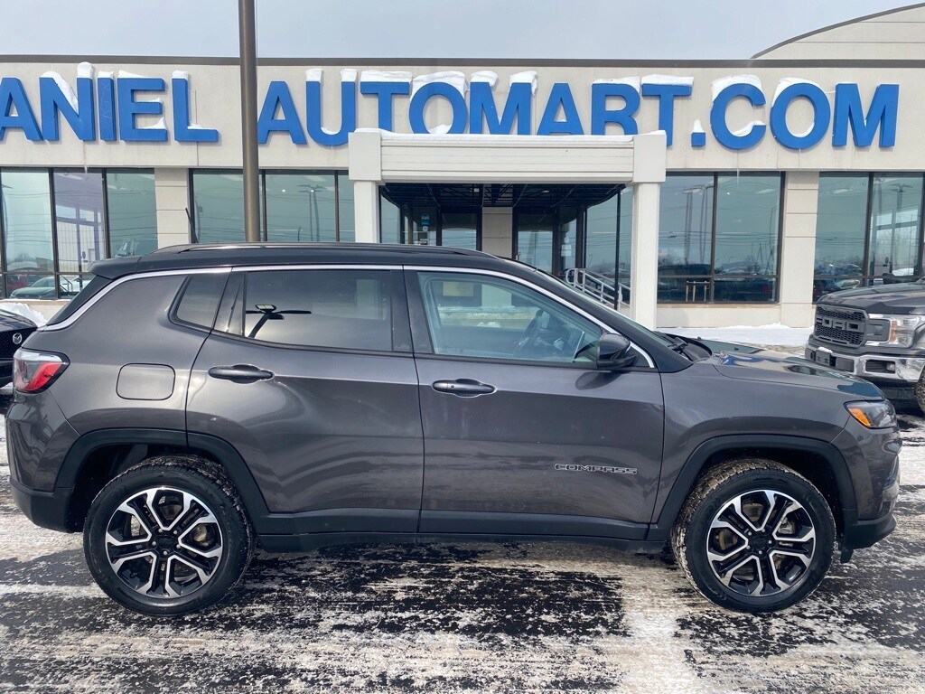 Apple CarPlay / Android Auto, 1 Owner, Compass Limited, 4WD, 10.1" Touchscreen Display, Auto High-beam Headlights, Automatic temperature control, Fully automatic headlights, Heated front seats, Heated steering wheel, Leather Trimmed Bucket Seats, ParkView Rear Back-Up Camera, Power driver seat, Quick Order Package 2GG, Rain sensing wipers, Wheels: 18" x 7" Painted Diamond Cut Aluminum.