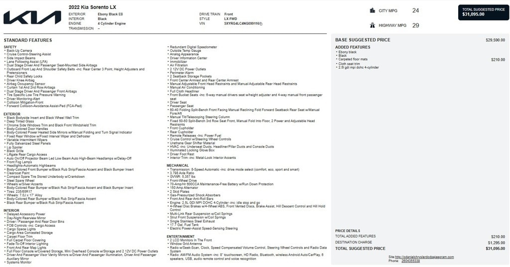 2022 Kia Sorento LX SUV Front-Wheel Drive
