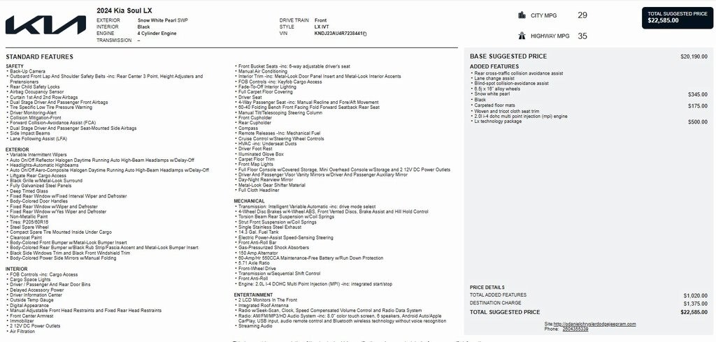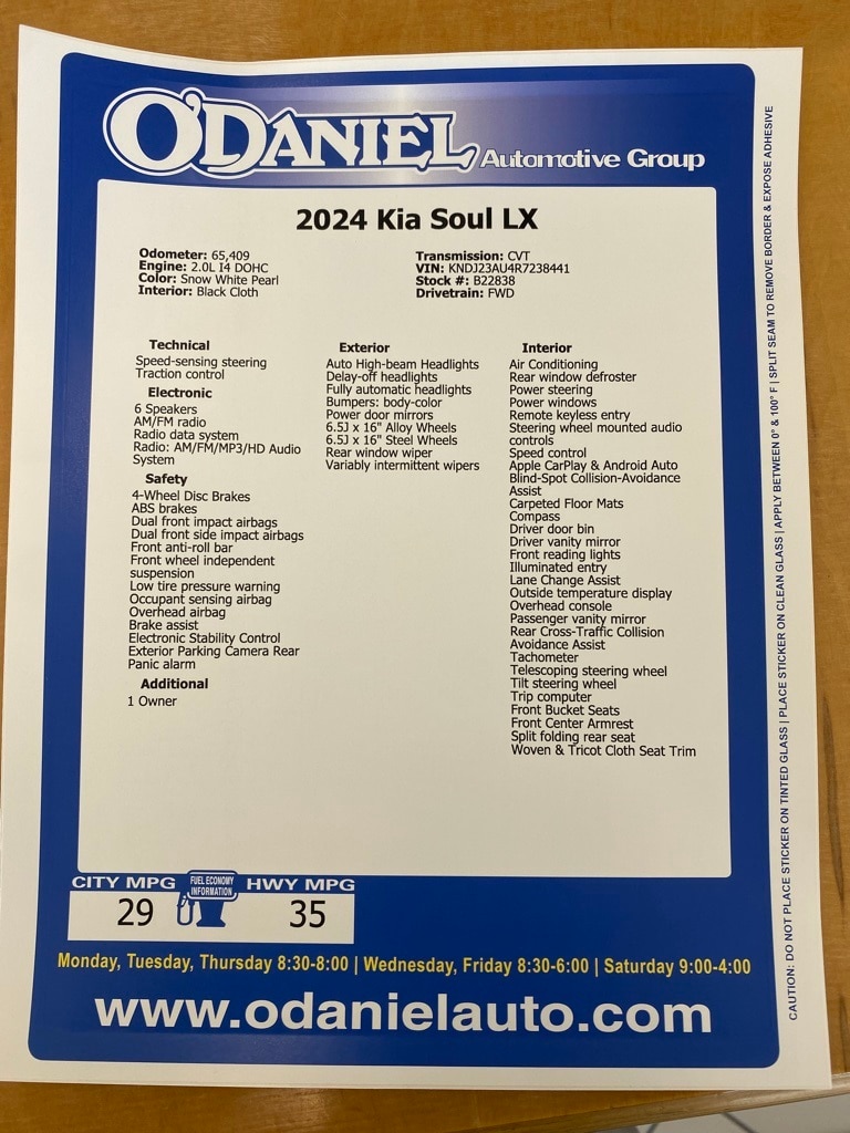 2024 Kia Soul LX Hatchback Front-Wheel Drive