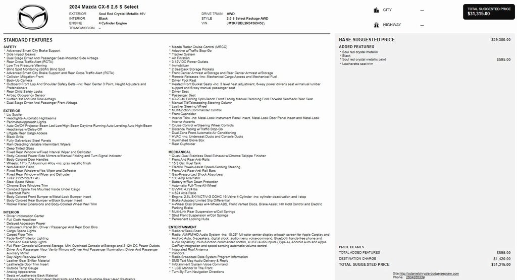 2024 Mazda CX-5 2.5 S Select Package SUV All-Wheel Drive