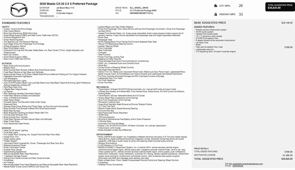 2025 Mazda CX-30 2.5 S Preferred Package SUV All-Wheel Drive
