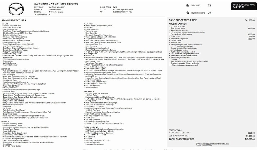 2025 Mazda CX-5 2.5 Turbo Signature SUV All-Wheel Drive