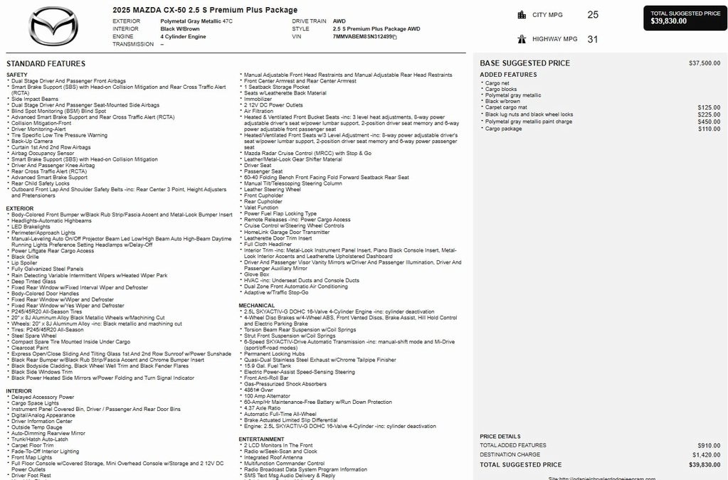 2025 Mazda CX-50 2.5 S Premium Plus Package SUV All-Wheel Drive
