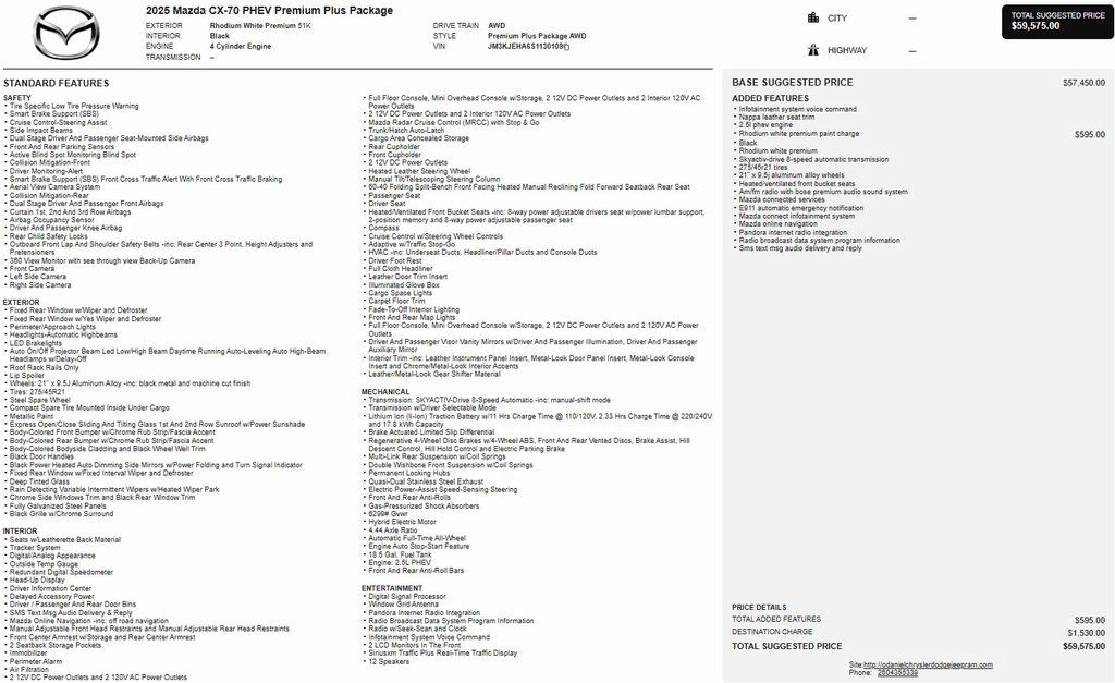 2025 Mazda CX-70 Phev Premium Plus SUV All-Wheel Drive