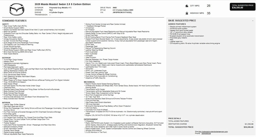 2025 Mazda Mazda3 2.5 S Carbon Edition Sedan All-Wheel Drive