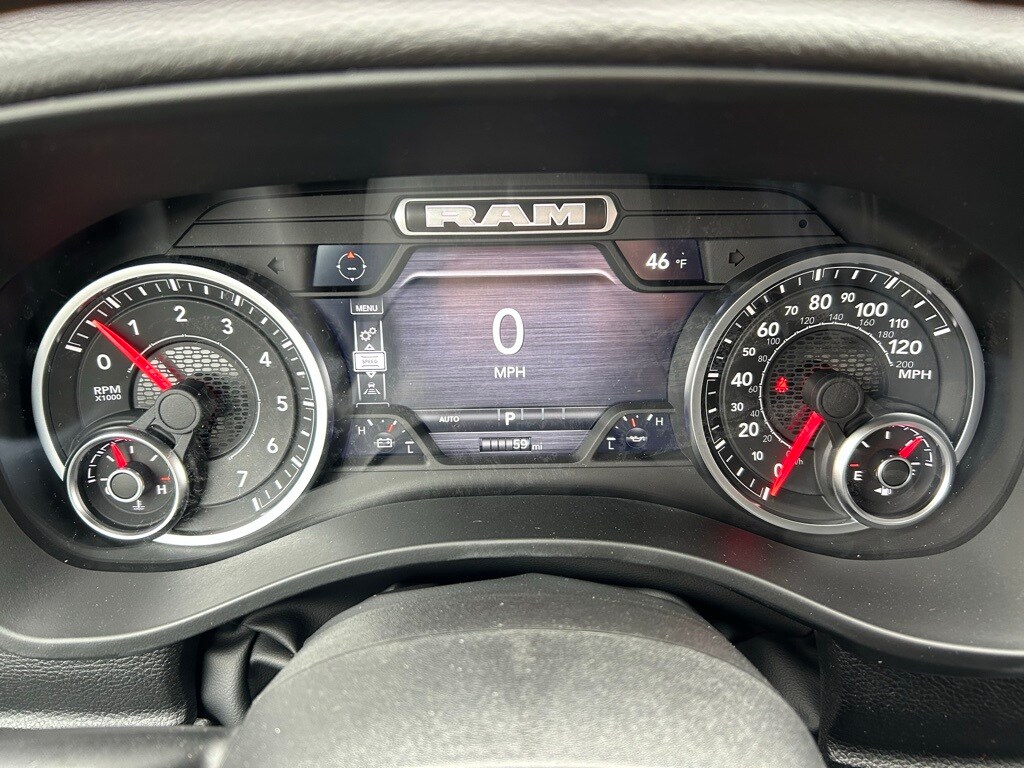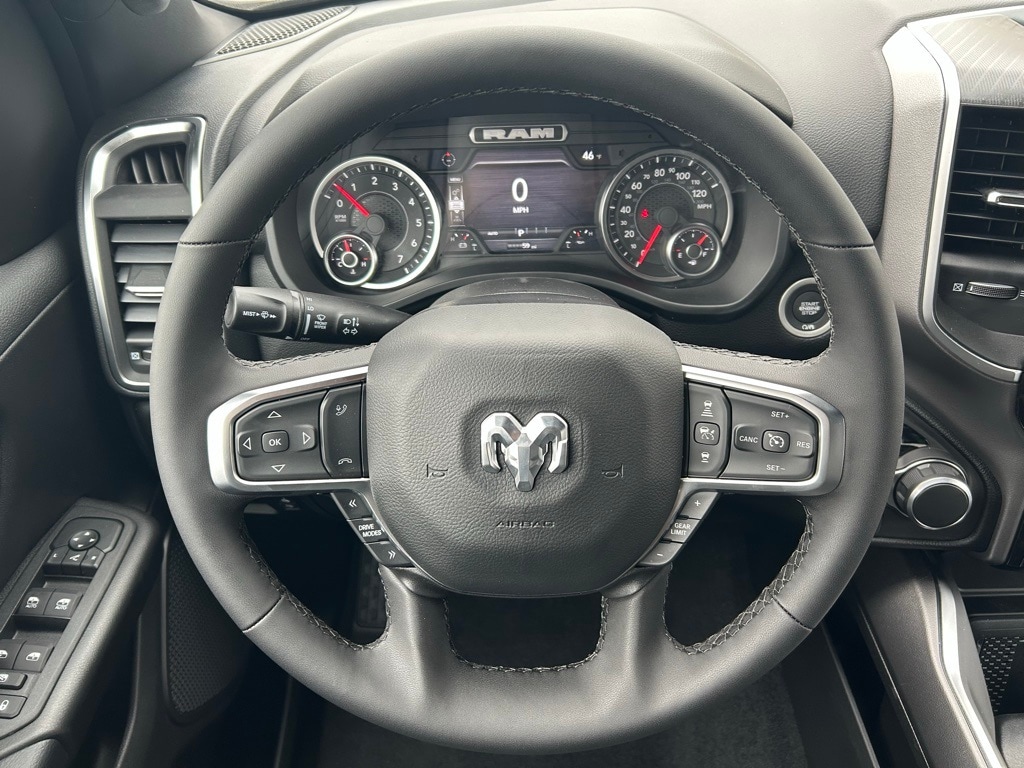 4" BDS Lift Kit, Wheels, Tires, Side Step, Tire Calibration, 115V Auxiliary Power Outlet, 115V Auxiliary Rear Power Outlet, 12" Touchscreen Display, 2nd Row In Floor Storage Bins, 3 Rear Seat Head Restraints, 4 Way Front Headrests, 400W Inverter, 4G LTE Wi-Fi Hot Spot, 9 Amplified Speakers w/Subwoofer, Accent Color Door Handles, Accent Color Premium Power Mirrors, Accent Color Tailgate Handle, Air Conditioning ATC w/Dual Zone Control, Anti-Spin Differential Rear Axle, Apple CarPlay, Auto Power-Folding Mirrors, Auto-Dimming Exterior Driver Mirror, Auto-Dimming Rear-View Mirror, Big Horn Level 2 Equipment Group, Black Exterior Mirrors, Black Exterior Truck Badging, Black Headlamp Bezels, Black Interior Accents, Black Painted Exterior Mirrors Caps, Black Premium Power Mirrors, Black Tail Lamp Bezels, Body Color Fender Flares, Body Color Front Bumper, Body Color Rear Bumper w/Step Pads, Bucket Seats, Center Console Parts Module, Cluster 7.0" TFT Color Display, Configurable Drive Mode, Connected Travel & Traffic Services, Connectivity - US/Canada, Convex Wide-Angle Exterior Mirror Insert, Deluxe Cloth Bucket Seats, Disassociated Touchscreen Display, Dual Exhaust w/Black Tips, Exterior Mirrors Courtesy Lamps, Exterior Mirrors w/Heating Element, Exterior Mirrors w/Supplemental Signals, Front Seat Back Map Pockets, Full Length Floor Console, Global Telematics Box Module (TBM), Glove Box Lamp, Google Android Auto, GPS Antenna Input, GPS Navigation, Grille Black Surround Black Mesh, HD Radio, Heated Front Seats, Heated Steering Wheel, Integrated Center Stack Radio, Integrated Voice Command w/Bluetooth, Leather Wrapped Steering Wheel, LED Dome Lamp w/On/Off Switch, LED Footwell Lighting, Manual Adjust 4-Way Front Passenger Seat, Media Hub w/2 Charge Only USBs, Night Edition, Overhead LED Lamps, Power 2-Way Driver Lumbar Adjust, Power Adjust 8-Way Driver Seat, Power Adjustable Pedals, Premium Overhead Console, Quick Order Package 27Z Big Horn, Radio: Uconnect 5 Nav w/12.0" Display, RAM Grille Badge - Black, Rear 60/40 Folding Seat, Rear Center Armrest, Rear Power Sliding Window, Rear Window Defroster, Remote Tailgate Release, Security Alarm, SiriusXM Radio Service, SiriusXM w/360L, Steering Wheel Mounted Audio Controls, Sun Visors w/Illuminated Vanity Mirrors, Universal Garage Door Opener, USB Host Flip, Wheels: 20" x 9.0" Aluminum Painted Clad, Wheels: 20" x 9" Aluminum Chrome Clad (WRK).