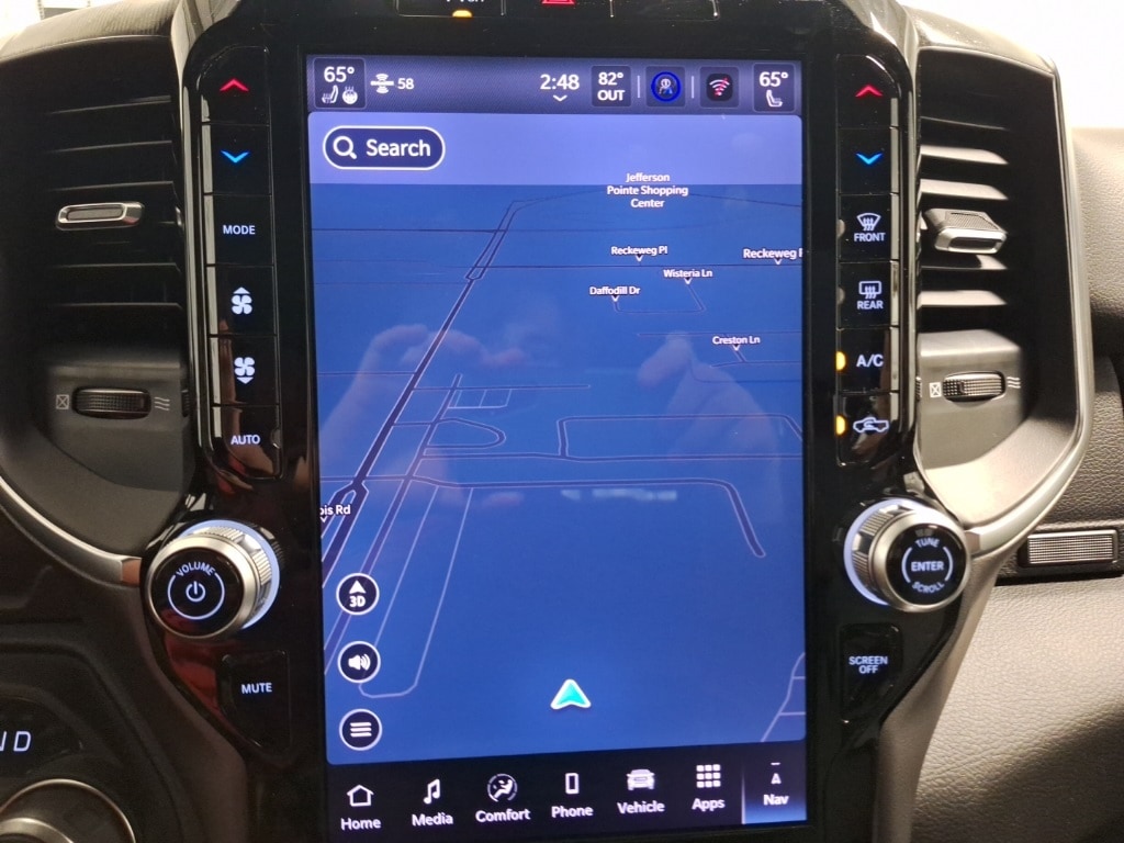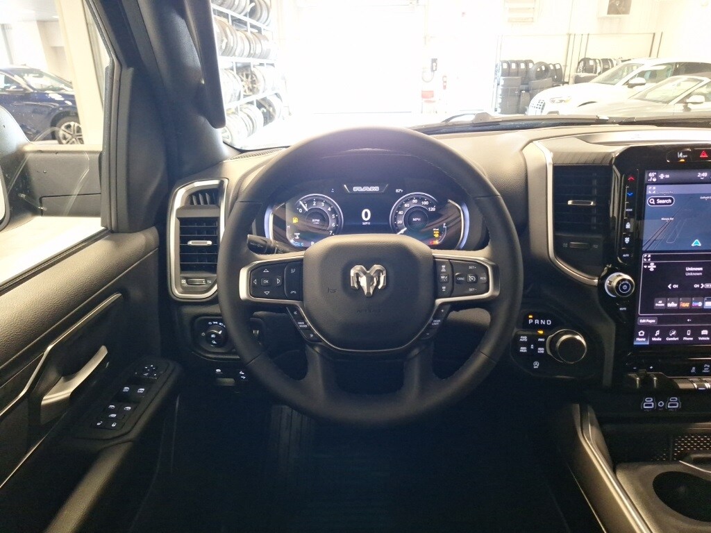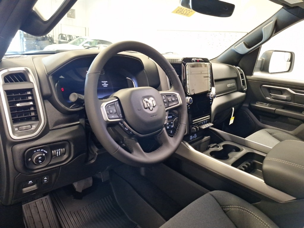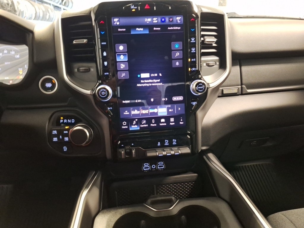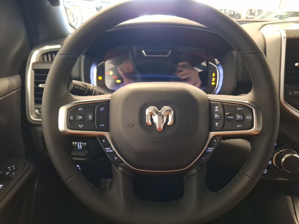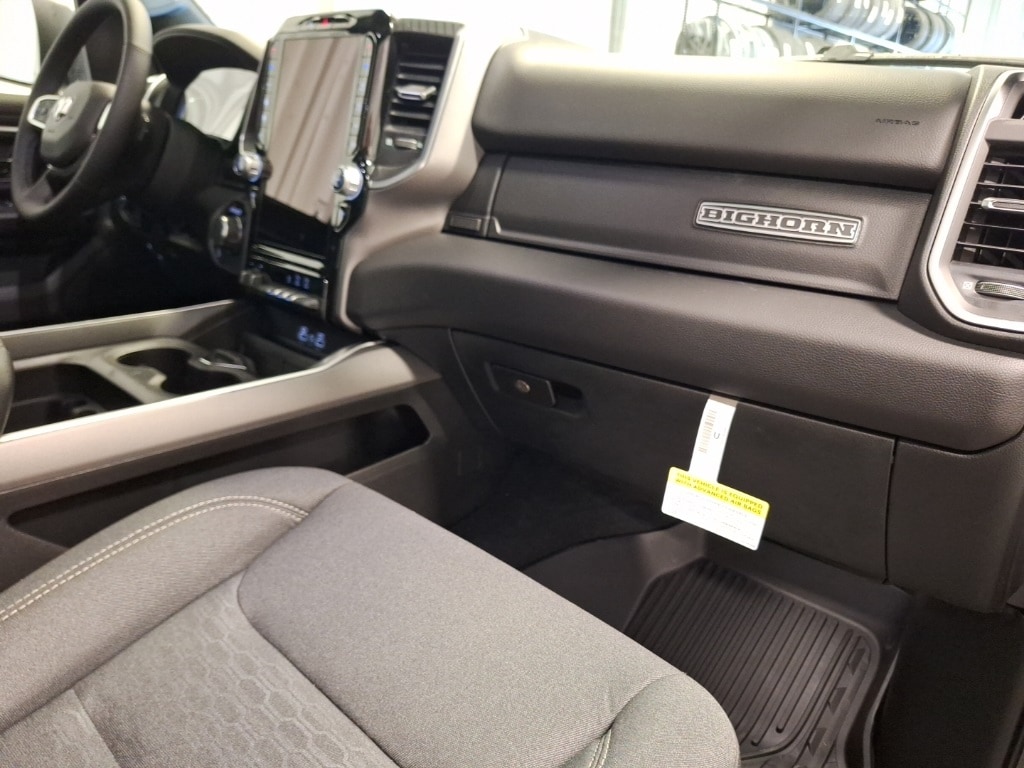 115V Auxiliary Power Outlet, 115V Auxiliary Rear Power Outlet, 12" Touchscreen Display, 2nd Row In Floor Storage Bins, 3 Rear Seat Head Restraints, 4 Way Front Headrests, 400W Inverter, 4G LTE Wi-Fi Hot Spot, 9 Amplified Speakers w/Subwoofer, Air Conditioning ATC w/Dual Zone Control, Apple CarPlay, Auto Power-Folding Mirrors, Auto-Dimming Exterior Driver Mirror, Auto-Dimming Rear-View Mirror, Big Horn Level 2 Equipment Group, Black Exterior Mirrors, Black Interior Accents, Black Premium Power Mirrors, Body Color Door Handles, Body Color Fender Flares, Body Color Front Bumper, Body Color Rear Bumper w/Step Pads, Body Color Tailgate Handle, Bucket Seats, Center Console Parts Module, Cluster 12" TFT Color Display, Cluster 7.0" TFT Color Display, Configurable Drive Mode, Connected Travel & Traffic Services, Connectivity - US/Canada, Convex Wide-Angle Exterior Mirror Insert, Deluxe Cloth Bucket Seats, Disassociated Touchscreen Display, Exterior Mirrors Courtesy Lamps, Exterior Mirrors w/Heating Element, Exterior Mirrors w/Supplemental Signals, Front Seat Back Map Pockets, Full Length Floor Console, Global Telematics Box Module (TBM), Glove Box Lamp, Google Android Auto, GPS Antenna Input, GPS Navigation, Grille Surround 1 Body Color Texture 1 Black, HD Radio, Heated Front Seats, Heated Steering Wheel, Integrated Center Stack Radio, Integrated Voice Command w/Bluetooth, Leather Wrapped Steering Wheel, LED Dome Lamp w/On/Off Switch, LED Footwell Lighting, Manual Adjust 4-Way Front Passenger Seat, Media Hub w/2 Charge Only USBs, MOPAR Front & Rear Rubber Floor Mats, Overhead LED Lamps, Power 2-Way Driver Lumbar Adjust, Power Adjust 8-Way Driver Seat, Power Adjustable Pedals, Premium Overhead Console, Quick Order Package 21Z Big Horn, Radio: Uconnect 5 Nav w/12.0" Display, RAM Grille Badge - Chrome, Rear 60/40 Folding Seat, Rear Center Armrest, Rear Power Sliding Window, Rear Window Defroster, Remote Tailgate Release, Secondary Active Grille Shutters, Security Alarm, SiriusXM Radio Service, SiriusXM w/360L, Sport Appearance Package, Steering Wheel Mounted Audio Controls, Sun Visors w/Illuminated Vanity Mirrors, Trailer Brake Control, USB Host Flip, Wheels: 20" x 9" Aluminum Chrome Clad (WRK), Wireless Charging Pad.