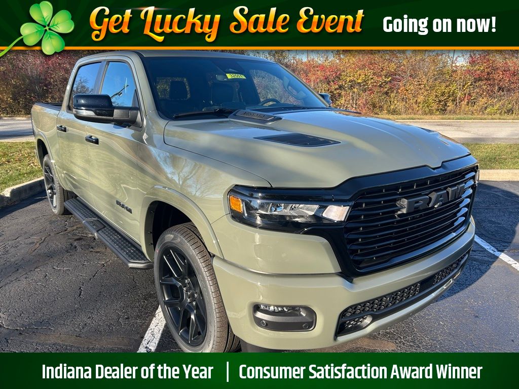 best value, must finance, extra rebates end 3/18/26, 14.4" Touchscreen Display, 4G LTE Wi-Fi Hot Spot, Accent Color Door Handles, Accent Color Premium Power Mirrors, Accent Color Tailgate Handle, Anti-Spin Differential Rear Axle, Auto Power-Folding Mirrors, Auto-Dimming Exterior Driver Mirror, Black Exterior Truck Badging, Black Headlamp Bezels, Black Interior Accents, Black Painted Exterior Mirrors Caps, Black Tail Lamp Bezels, Body Color Front Bumper, Cluster 12" TFT Color Display, Connectivity - US/Canada, Convex Wide-Angle Exterior Mirror Insert, Exterior Mirrors Approach Lamps, Exterior Mirrors Courtesy Lamps, Front Passenger Interactive Display, GPS Navigation, Grille Surround 3 Black Texture 2 Black, Integrated Center Stack Radio, Laramie Level 2 Equipment Group, Night Edition, Pirelli Brand Tires, Power Tailgate, Proximity Approach/Departure Lamps, Quick Order Package 21H Laramie, Rain Sensitive Windshield Wipers, RAM Grille Badge - Black, SiriusXM Radio Service, Sport Performance Hood, USB Host Flip, Wheels: 22" x 9" Forged Aluminum.