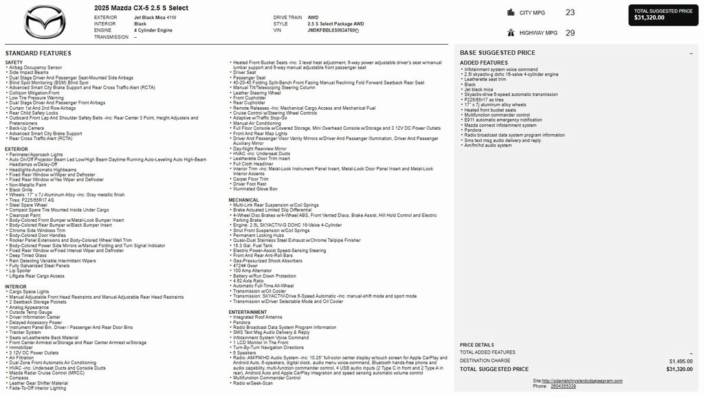 2025 Mazda CX-5 2.5 S Select Package SUV All-Wheel Drive