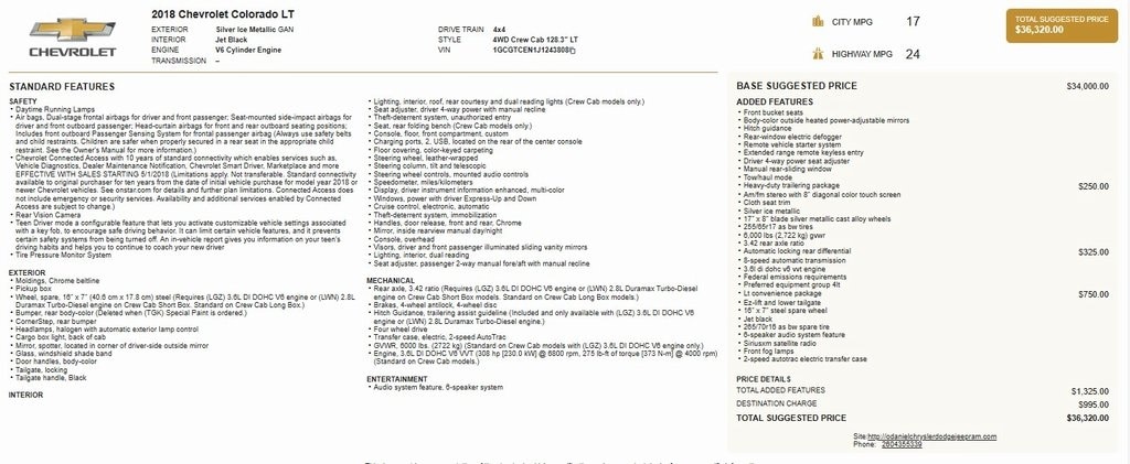 1 Owner / Local Trade in, Colorado LT, 4D Crew Cab, 4WD, Alloy wheels, Apple CarPlay, Driver 4-Way Power Seat Adjuster, Exterior Parking Camera Rear, EZ-Lift & Lower Tailgate, Front Fog Lamps, Heavy-Duty Trailering Package, LT Convenience Package, Manual Rear-Sliding Window, Power driver seat, Preferred Equipment Group 4LT, Rear-Window Electric Defogger, Remote Vehicle Starter System.