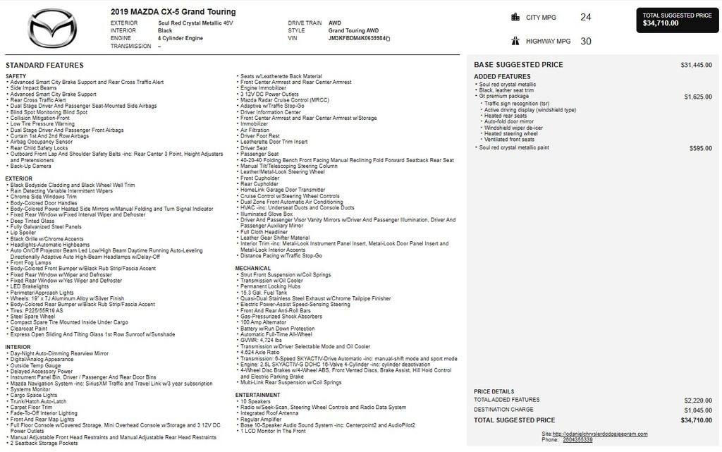 This 2019 Mazda CX-5 Grand Touring is a remarkable SUV that combines exceptional performance, premium features, and exceptional value. With its striking Soul Red Crystal Metallic paint and well-appointed interior, this CX-5 is sure to turn heads wherever you go.