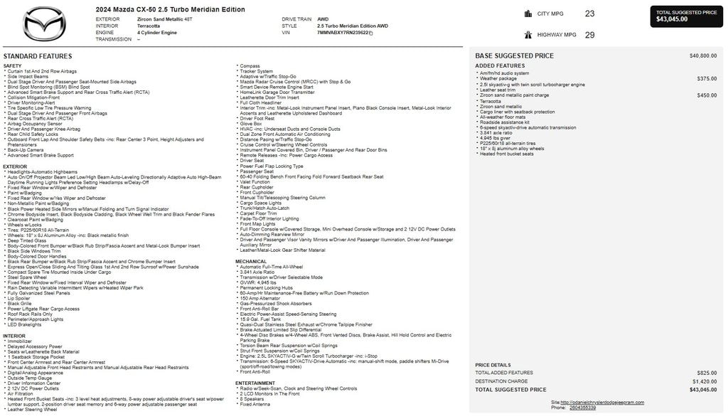 Elevate your driving experience with the 2024 Mazda CX-50 2.5 Turbo Meridian Edition. This exceptional crossover is waiting for you to make it your own. Contact us today to schedule a test drive and discover the true power of Mazda engineering.