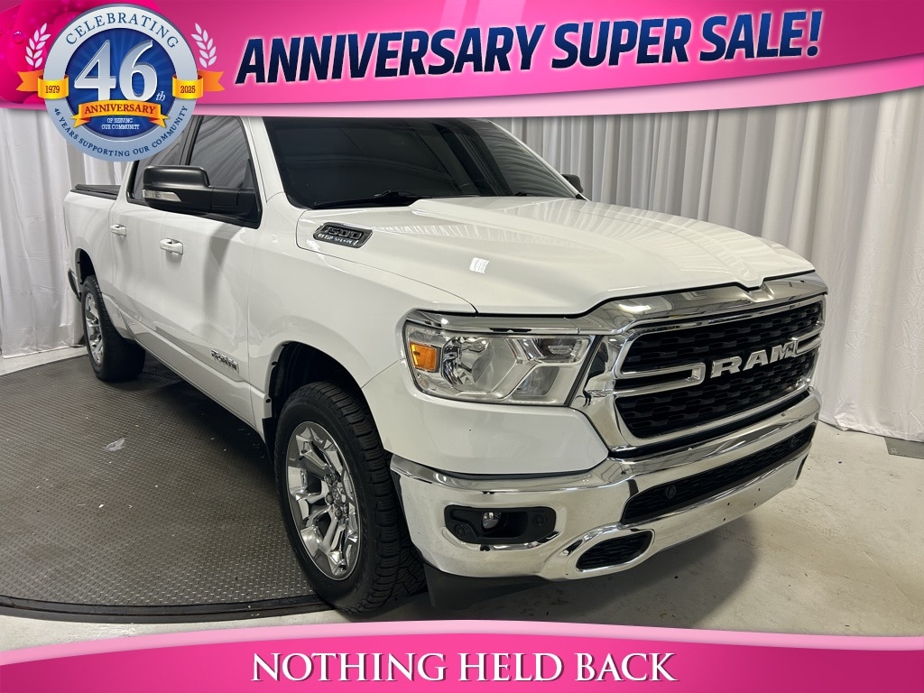 Navigation/GPS/Navi, Purchased Here-Serviced Here!, Tinted Windows, Smells Great - Looks Sharp!!, Back-Up Camera!, Bluetooth/HandsFree, Clean Accident Free AutoCheck Report, Ram1500 received J.D. Power’s Best Driver appeal for light duty pick ups three years in a row., Big Horn Level 2 Equipment Group, One Owner, 115V Auxiliary Power Outlet, 115V Auxiliary Rear Power Outlet, 2nd Row In Floor Storage Bins, 400W Inverter, 4G LTE Wi-Fi Hot Spot, 8.4" Touchscreen Display, Air Conditioning ATC w/Dual Zone Control, Apple CarPlay, Auto-Dimming Exterior Driver Mirror, Auto-Dimming Rear-View Mirror, Big Horn Badge, Big Horn Level 2 Equipment Group, Black Exterior Mirrors, Black Premium Power Mirrors, Bluetooth Handsfree Phone & Audio, Class IV Receiver Hitch, Cluster 7.0" TFT Color Display, Connectivity - US/Canada, Convex Wide-Angle Mirror Insert, Exterior Mirrors Courtesy Lamps, Exterior Mirrors w/Heating Element, Exterior Mirrors w/Supplemental Signals, For Details, Visit DriveUconnect.com, Global Telematics Box Module (TBM), Glove Box Lamp, Google Android Auto, GPS Antenna Input, Heated Front Seats, Heated Steering Wheel, Integrated Center Stack Radio, Media Hub w/2 Charge Only USBs, ParkSense Front/Rear Park Assist w/Stop, Power 2-Way Driver Lumbar Adjust, Power 8-Way Driver Seat, Power Adjustable Pedals, Power-Folding Mirrors, Quick Order Package 27Z Big Horn, Radio: Uconnect 5 W w/8.4" Display, Rear Dome w/On/Off Switch Lamp, Rear Power Sliding Window, Rear Window Defroster, Remote Start System, Security Alarm, SiriusXM Radio Service, SiriusXM Satellite Radio, Sun Visors w/Illuminated Vanity Mirrors, Universal Garage Door Opener, USB Host Flip.